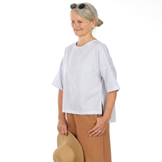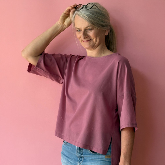 Locker, lässig, unkompliziert – das ist FRAU MAKI. Diese Bluse bringt alles mit, was ein entspanntes Teil für jeden Tag braucht: einen lockeren Schnitt, einen charmanten Rundhalsausschnitt (sauber eingefasst mit Schrägband), weite Ärmel in zwei Varianten (3/4 oder lang – du entscheidest!) und ein verlängertes Rückenteil mit hübscher Quetschfalte. Die seitlichen Schlitze geben zusätzlich Bewegungsfreiheit und machen FRAU MAKI auch in Sachen Stil ganz groß. Das Beste: Die Bluse kommt ganz ohne Verschluss aus – einfach reinschlüpfen und wohlfühlen – FRAU MAKI sitzt immer lässig und sieht dabei einfach gut aus.