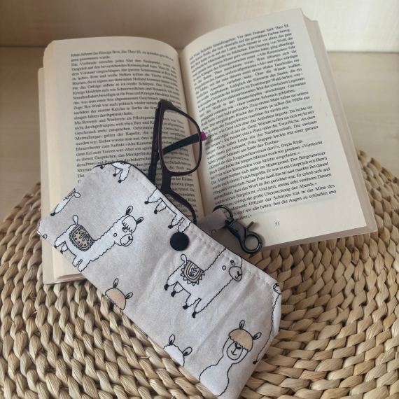 Das Brillenetui ist geeignet für Brillen bis zu einer Breite von 14 cm. Wenn deine Brille breiter ist oder du ein sehr dickes Futter benutzt, drucke das Schnittmuster einfach mit 110 % aus. Für Kinderbrillen kannst du es entsprechend verkleinern.