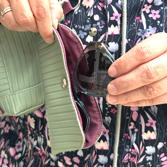 Das ist perfekt für Sonnenbrillen, aber auch, wenn du eine Sehstärkenbrille trägst und im Sommer oft mit der Sonnenbrille wechseln willst. So musst du nicht immer erst die Handtasche öffnen und dort nach deiner Brille kramen.