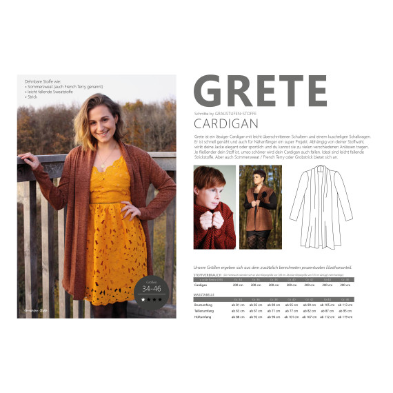CARDIGAN GRETE GR. 34 BIS 46 EBOOK UND SCHNITTMUSTER