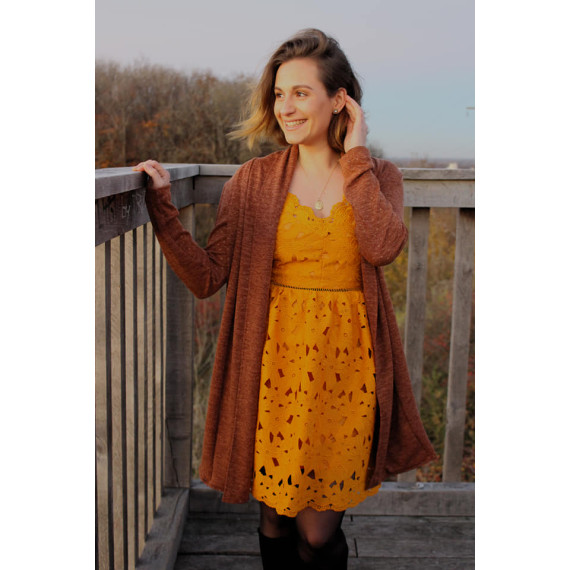 Näh dir deinen Lieblingscardigan mit unserem Schnittmuster Grete. Grete ist ein lässiger Cardigan mit leicht überschnittenen Schultern und einem kuscheligen Schalkragen. Er ist schnell genäht und auch für Nähanfänger ein super Projekt.