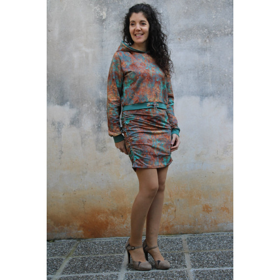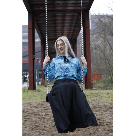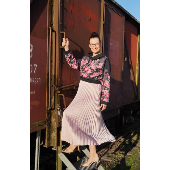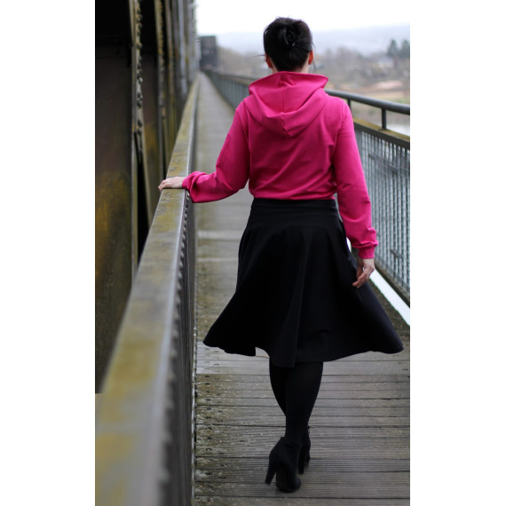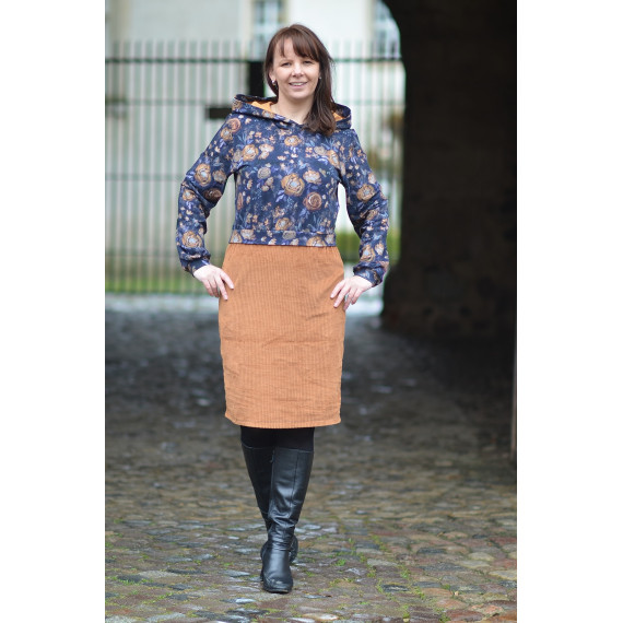ANOUK ist ein lässiger Crop-Hoodie. Du kannst ihn zu deinen Kleidern, Jeans oder Röcken tragen. Am besten nähst du deinen ANOUK aus einem schönen French Terry / Sommersweat. Aber auch Baumwolljersey ist möglich. ANOUK ist schnell genäht und auch für Nähanfängerinnen ein tolles Projekt. Du kannst deinen ANOUK wahlweise mit einer Kapuze oder mit einem Halsbündchen nähen.