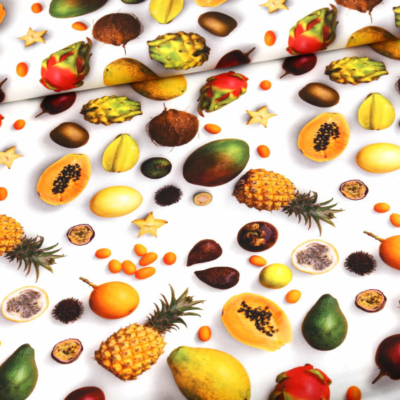 Canvas - feste Baumwolle - Tropical Fruits - Weiß