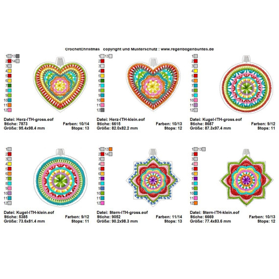 enthält 6 Stickmotive für ITH WEIHNACHTS-Anhänger.