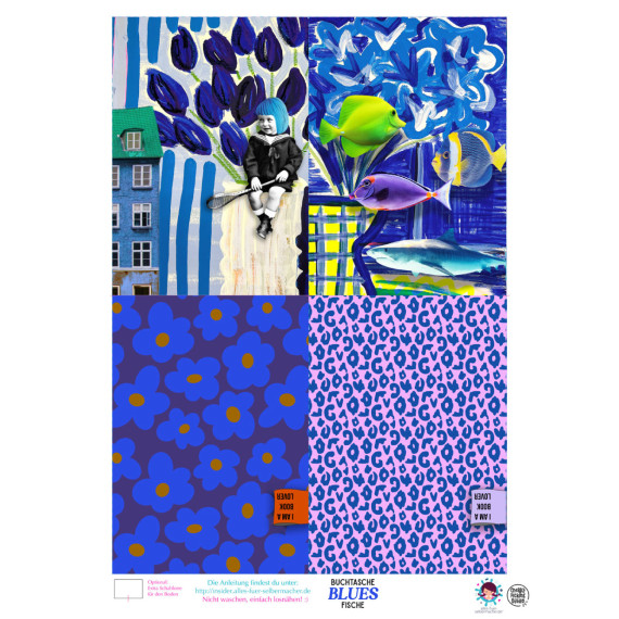 DIY-NÄHSET - Buchtasche - BLUES - Fische - Cherry Picking - Softshell - abby and amy