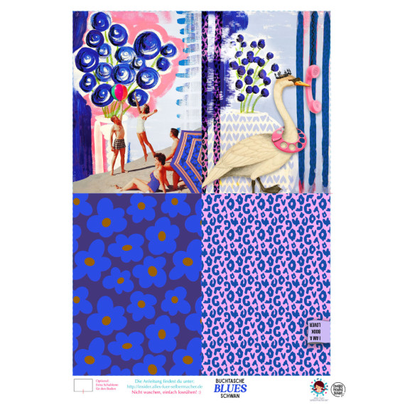 DIY-NÄHSET - Buchtasche - BLUES - Schwan - Cherry Picking - Softshell - abby and amy