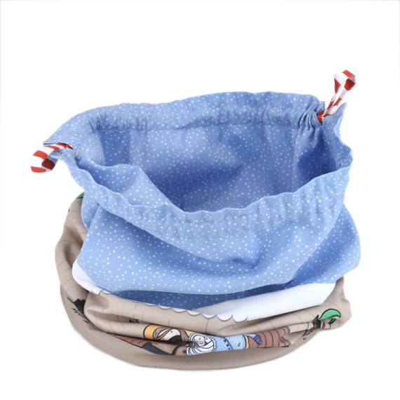Wir haben den Aufbewahrungsbeutel ohne zusätzliche Einlage genäht. Durch die Krippenkissen erhält der Beutel später automatisch genügend Stabilität. Wenn Du möchtest, dass der Beutel auch ohne Inhalt aufrecht steht, kannst Du beim Nähen eine Einlage - zum Beispiel Vlieseline - mit einarbeiten. Dadurch bekommt der Stoff mehr Stand und der Beutel fällt nicht in sich zusammen.