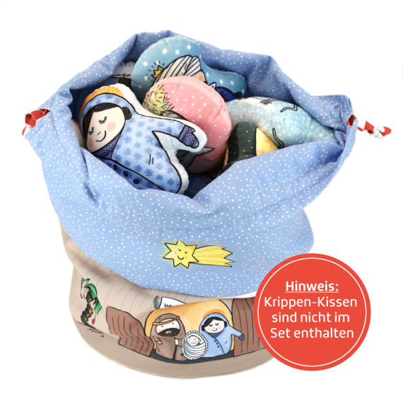Mit diesem Set kannst Du Dir ganz einfach einen schönen und praktischen Beutel nähen, in dem das komplette Mini - Krippen - Formkissen-Set ordentlich, sicher und immer griffbereit verstaut werden kann. Ideal zum Aufbewahren, Mitnehmen oder Verschenken.