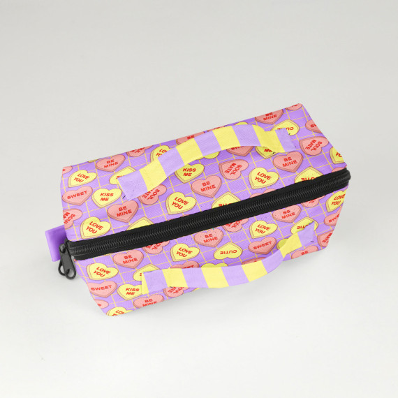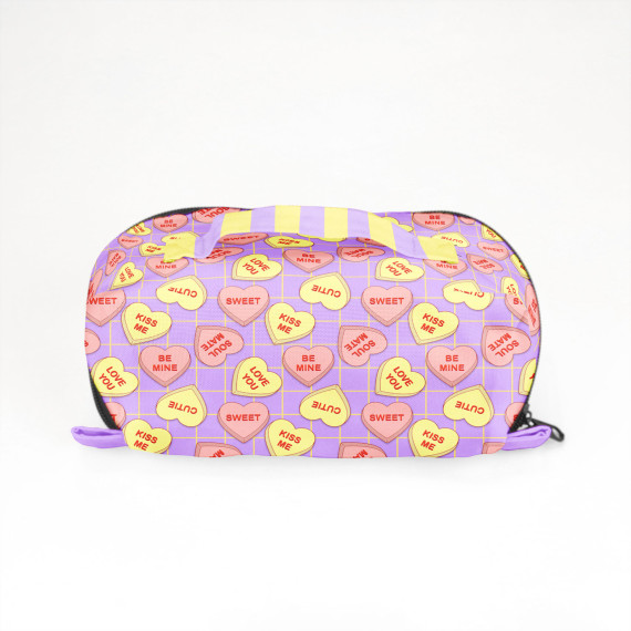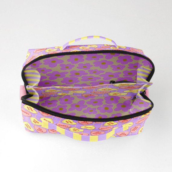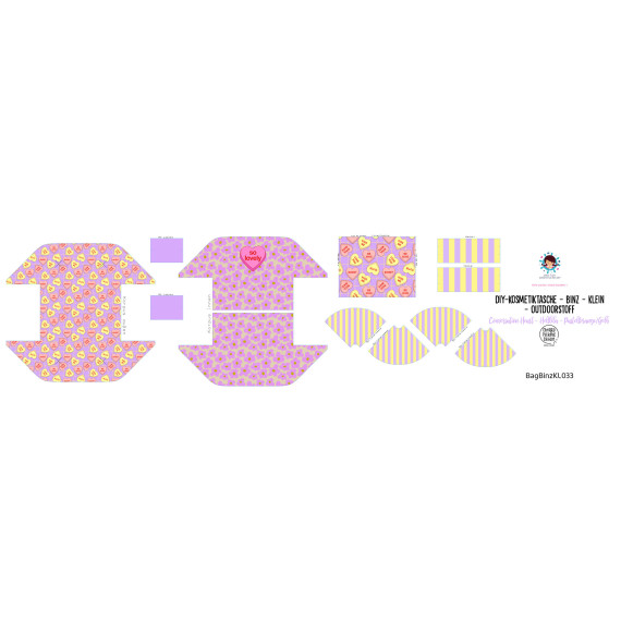 DIY-Nähset - KLEIN - Kosmetiktasche - Binz - Conversation Heart - Helllila - Pastellorange/Gelb - Cherry Picking - abby and amy