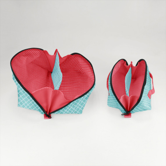 „Binz" ist eine praktische Multifunktions-Kosmetiktasche, die es in zwei Größen gibt. Sie wird mit innenliegendem Trennsteg mit zusätzlicher Tasche genäht - damit alles, was Du brauchst, übersichtlich verstaut ist und Du nicht lange suchen musst. Die Aufteilung sorgt dafür, dass beide Seiten gut genutzt werden können, ohne dass der Inhalt durcheinandergerät.