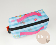 Die kleine fertig genähte Kosmetiktasche hat die Maße (geschlossen) 18 cm x 8 cm x 8 cm und bietet ebenfalls Platz für Kosmetikartikel wie Deo, Mascara oder eine kleine Schminkpalette und ist dabei auch perfekt für die Handtasche. Aber auch das Rasierzeug der Herren findet in Binz seinen Platz. Zusätzlich eignet sich die kleine Variante sehr gut als Federmäppchen oder Medikamententasche für unterwegs.