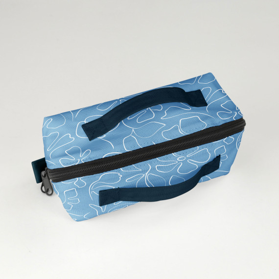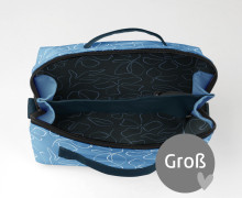 Die große fertig genähte Kosmetiktasche hat die Maße (geschlossen) 22 x 12 x 12 cm und eignet sich perfekt zur Aufbewahrung von Make-Up und Kosmetik auf längeren Reisen - hier finden nicht nur Zahnbürste und Zahnpasta Platz, sondern auch Bürste, Haarspray, Duschgel und Co. Zuhause kann Binz genutzt werden, um Schminkutensilien wie Pinseln und Make-Up auf dem heimischen Schminktisch dekorativ zu verstauen.