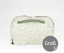 Die große fertig genähte Kosmetiktasche hat die Maße (geschlossen) 22 x 12 x 12 cm und eignet sich perfekt zur Aufbewahrung von Make-Up und Kosmetik auf längeren Reisen - hier finden nicht nur Zahnbürste und Zahnpasta Platz, sondern auch Bürste, Haarspray, Duschgel und Co. Zuhause kann Binz genutzt werden, um Schminkutensilien wie Pinseln und Make-Up auf dem heimischen Schminktisch dekorativ zu verstauen.