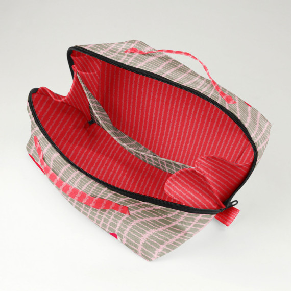 Die große fertig genähte Kosmetiktasche hat die Maße (geschlossen) 22 x 12 x 12 cm und eignet sich perfekt zur Aufbewahrung von Make-Up und Kosmetik auf längeren Reisen - hier finden nicht nur Zahnbürste und Zahnpasta Platz, sondern auch Bürste, Haarspray, Duschgel und Co. Zuhause kann Binz genutzt werden, um Schminkutensilien wie Pinseln und Make-Up auf dem heimischen Schminktisch dekorativ zu verstauen.