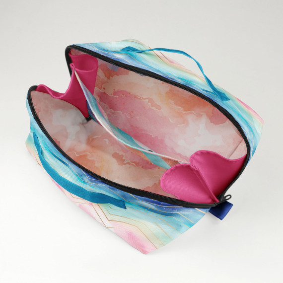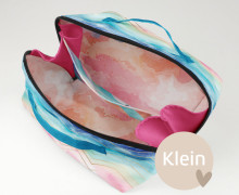 „Binz" ist eine praktische Multifunktions-Kosmetiktasche, die es in zwei Größen gibt. Sie wird mit innenliegendem Trennsteg mit zusätzlicher Tasche genäht - damit alles, was Du brauchst, übersichtlich verstaut ist und Du nicht lange suchen musst. Die Aufteilung sorgt dafür, dass beide Seiten gut genutzt werden können, ohne dass der Inhalt durcheinandergerät.