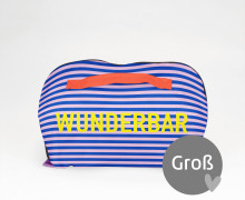 Die große fertig genähte Kosmetiktasche hat die Maße (geschlossen) 22 x 12 x 12 cm und eignet sich perfekt zur Aufbewahrung von Make-Up und Kosmetik auf längeren Reisen - hier finden nicht nur Zahnbürste und Zahnpasta Platz, sondern auch Bürste, Haarspray, Duschgel und Co. Zuhause kann Binz genutzt werden, um Schminkutensilien wie Pinseln und Make-Up auf dem heimischen Schminktisch dekorativ zu verstauen.