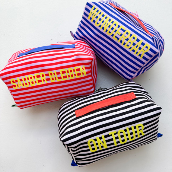 Die kleine fertig genähte Kosmetiktasche hat die Maße (geschlossen) 18 cm x 8 cm x 8 cm und bietet ebenfalls Platz für Kosmetikartikel wie Deo, Mascara oder eine kleine Schminkpalette und ist dabei auch perfekt für die Handtasche. Aber auch das Rasierzeug der Herren findet in Binz seinen Platz. Zusätzlich eignet sich die kleine Variante sehr gut als Federmäppchen oder Medikamententasche für unterwegs.