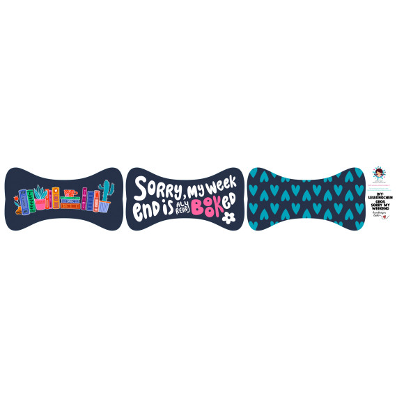Wundervolles Nähset zum Nähen eines Leseknochens mit Büchern, Herzen und dem Spruch "Sorry my weekend is all booked".