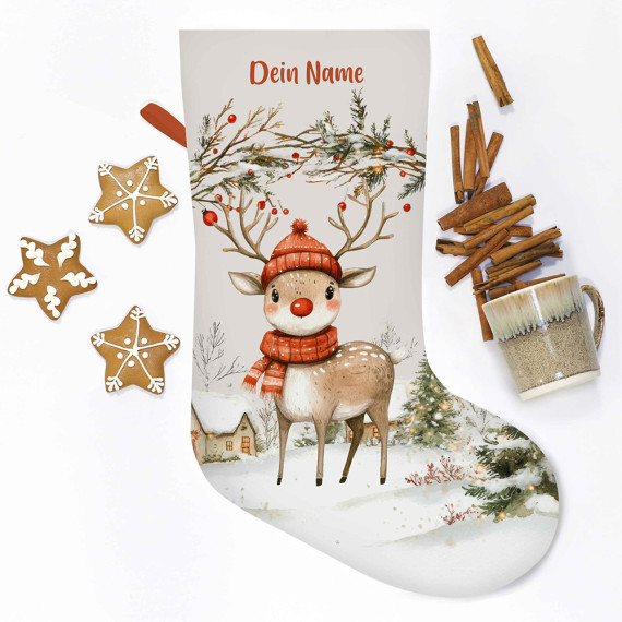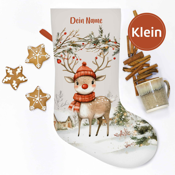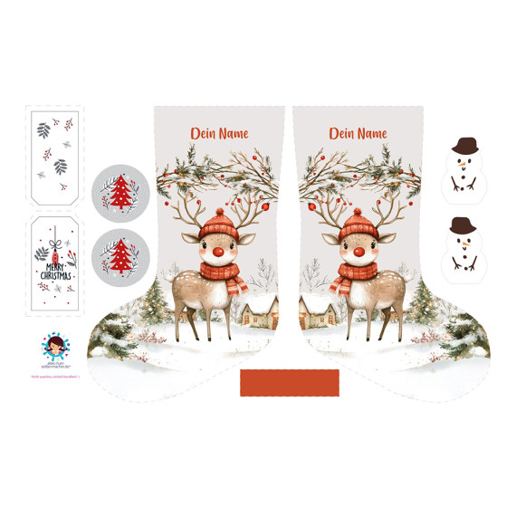 DIY-Nähset - Nikolaussocke - KLEIN - Softshell - Niedliches Rentier - Dorf