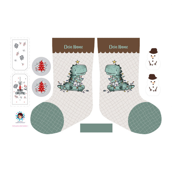 DIY-Nähset - Nikolaussocke - KLEIN - Softshell - RoboTreeRex - Mintgrün/Greige - Katzengold Designs