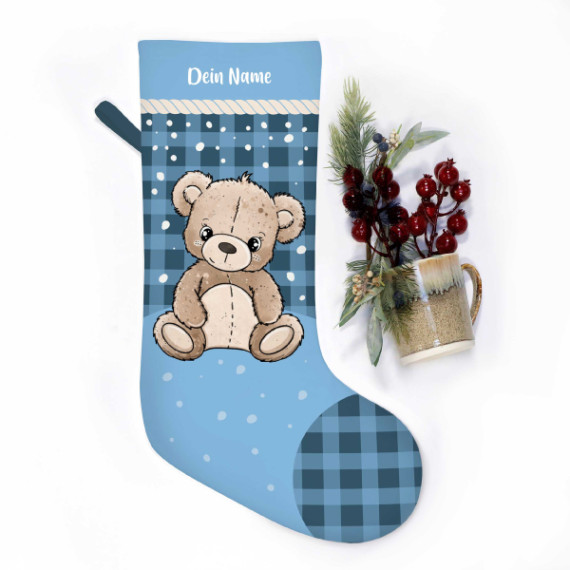 DIY-Nähset - Nikolaussocke - Softshell - Teddylein - Blau - Katzengold Designs