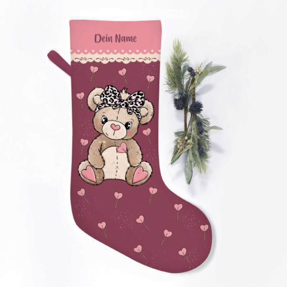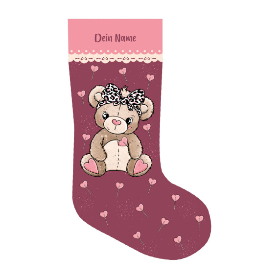 DIY-Nähset - Nikolaussocke - Softshell - Teddylein - Weinrot/Rosa - Katzengold Designs