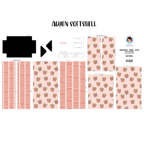 Du erhältst ein Stoffstück aus Softshell (Außenstoff) mit den Maßen ca. 140cm x 80cm