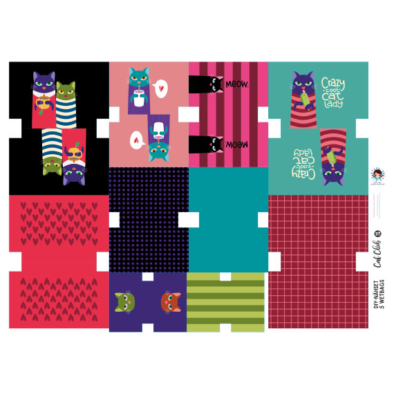 Wundervolles Nähset zum Nähen von 5 kleinen "Kosmetik" Täschchen mit süßen Katzen in unterschiedlichen Größen.