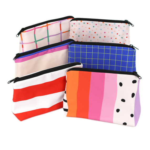 Wundervolles Nähset zum Nähen von 6 kleinen "Kosmetik" Täschchen mit verschiedenen Mustern in unterschiedlichen Größen.