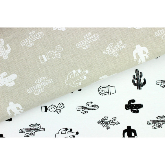 Dekostoff - Feste Baumwolle - Kaktus - Kakteen - Weiß
