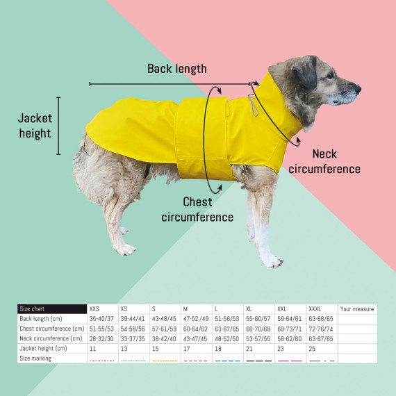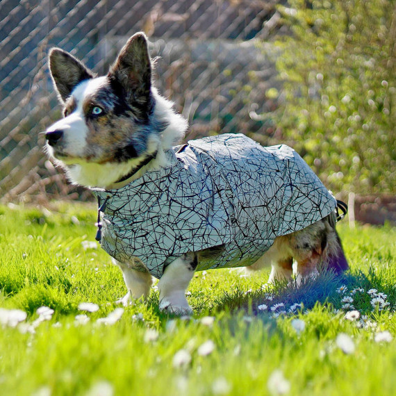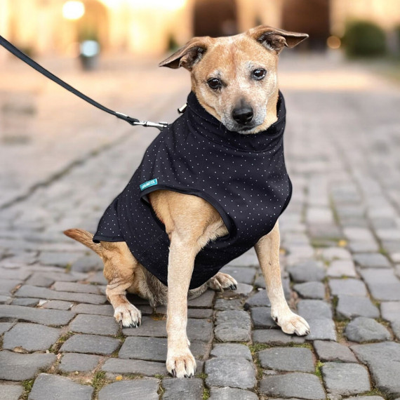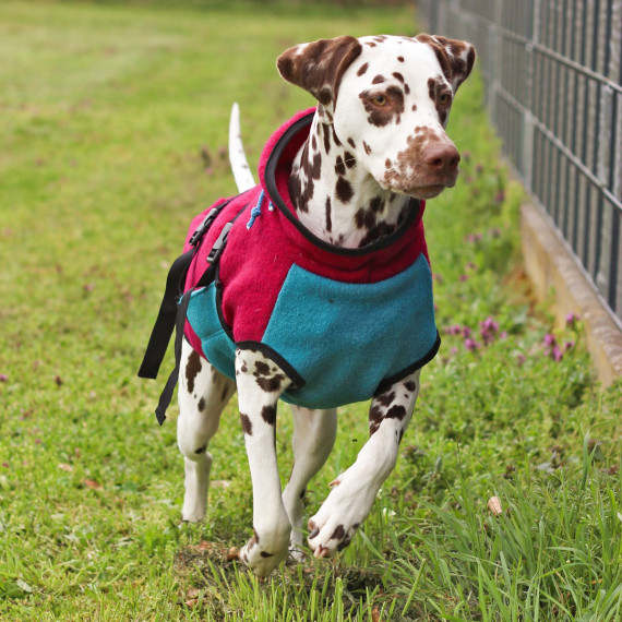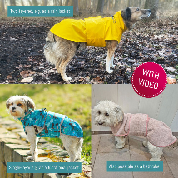 The Alma dog jacket can be sewn in two different ways: single-layered, for example, as a softshell dog jacket, or double-layered as a dog raincoat...