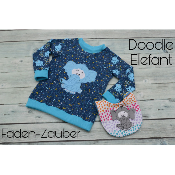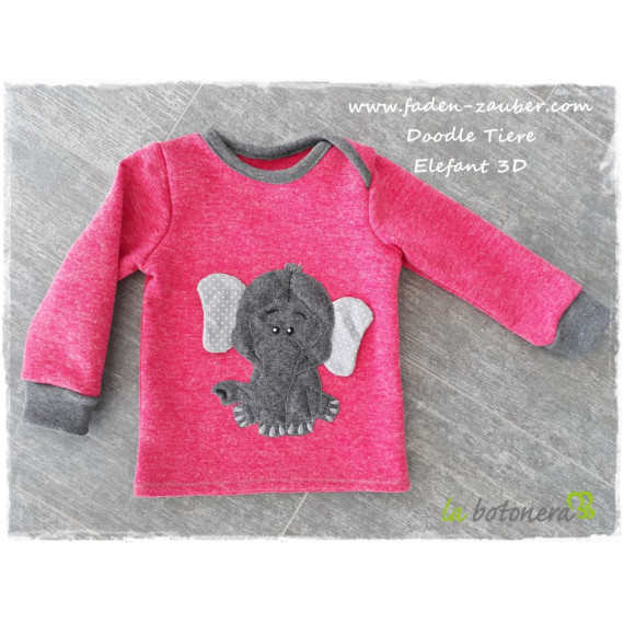 Doodle-Motiv Elefant 3D - Stickdatei-Set für den 10x10cm bis 20x30cm Rahmen