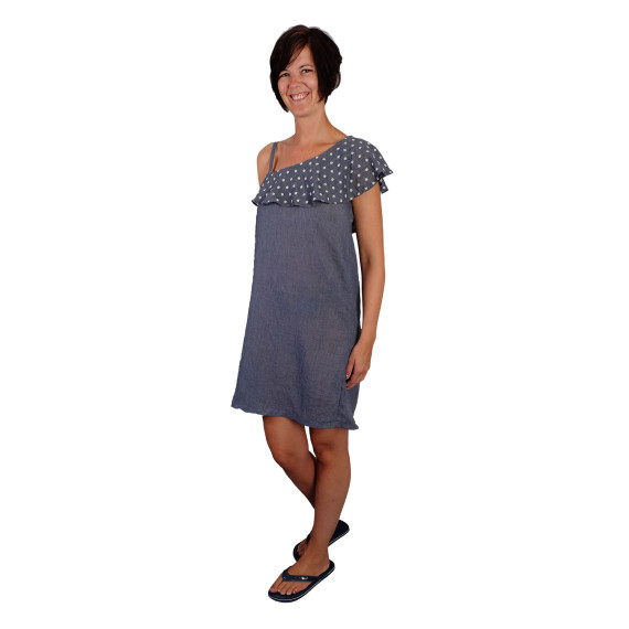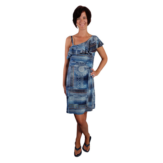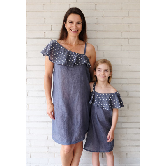 Dies ist ein Schnittmuster für ein Oneshoulder Kleid mit einem Volantkragen. Je nach Stoff wird dieses Kleid elegant oder sportlich aussehen. Dieses Kleid kann aus allen Materialien genäht werden. Aus unelastischen Stoffen ist es notwendig, einen nahtfeinen Reißverschluss einzuarbeiten.