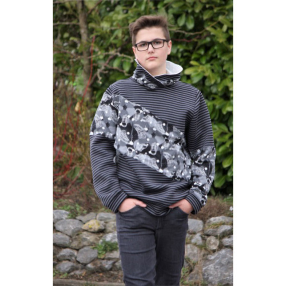 Zusätzlich 50 cm Bündchenstoff für Arm- und Saumbündchen.