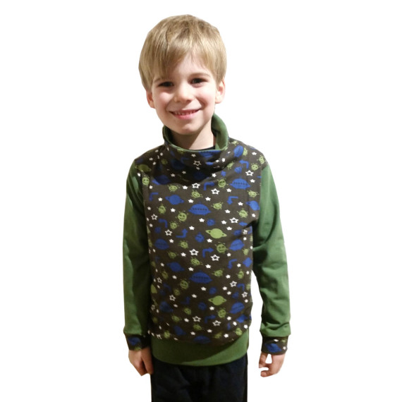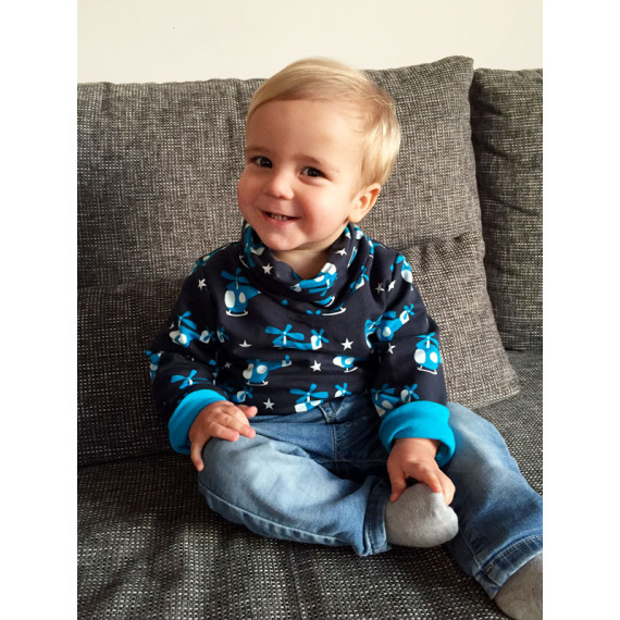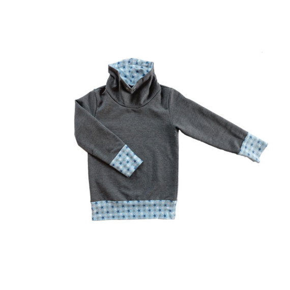 Ein trendiges Sweatshirt für Jungs und Mädels. Der Rollkragen kann mit oder ohne Ösen verarbeitet werden. Durch verschiedene Stoffe bekommst Du immer wieder einen neuen Look. Wir lieben diesen Schnitt weil er einfach genäht ist und so viele Variationen bietet.