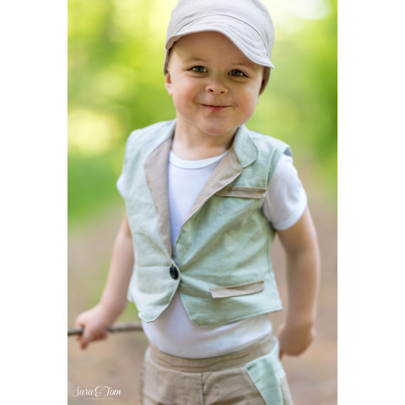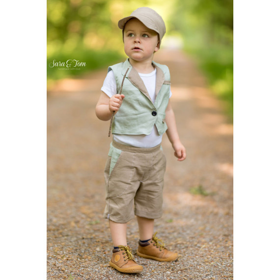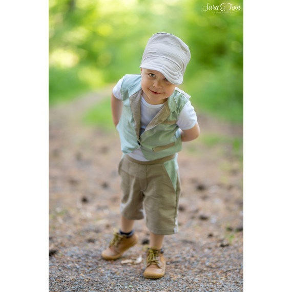 Diese unisex Weste ist ein toller Begleiter durch das ganze Jahr. Du kannst hier jedes Material verwenden und bekommst dadurch unterschiedliche Styles. Ob aus Leinen und Baumwolle für den Sommer oder vielleicht aus Samt und Canvas als Trachtenweste, hier ist alles möglich. Die Weste ist mit der Bloggerin Sara von "Sara & Tom" entstanden.