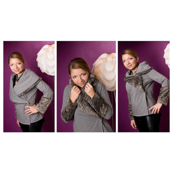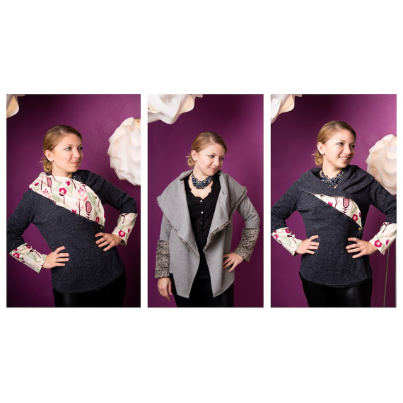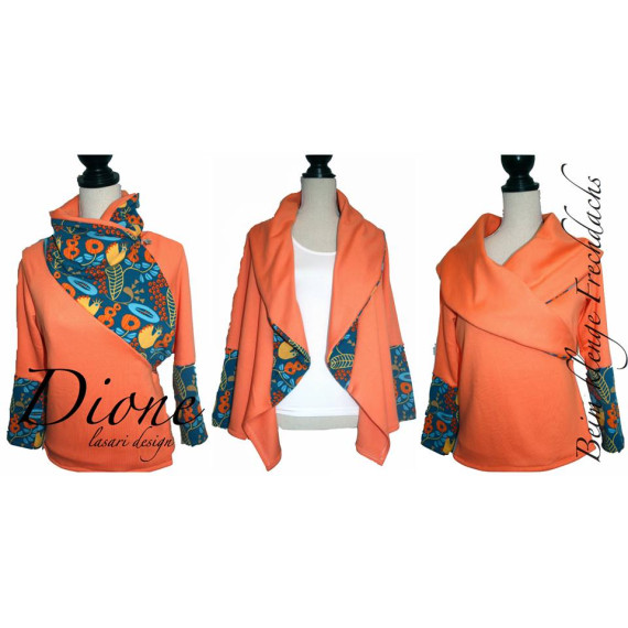 Dione ist eine wunderschöne Kuscheljacke mit einem ganz tollen großen Kragen den ihr auf verschiedene Weisen tragen könnt. Entweder ganz elegant auf den Schultern oder hochgeklappt zum reinkuscheln. Egal wie, es sieht immer toll aus und der Kontraststoff auf der Unterseite des Kragens macht die Jacke zu einem echten Hingucker!
