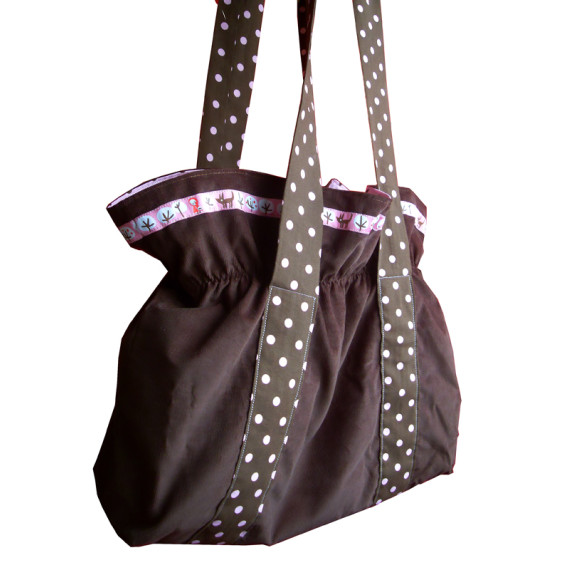 Für die Tasche ist feste Baumwolle am besten geeignet. Durch den Schnitt steht die Tasche recht stabil. Dünne Baumwolle unbedingt mit Bügelvlies verstärken.