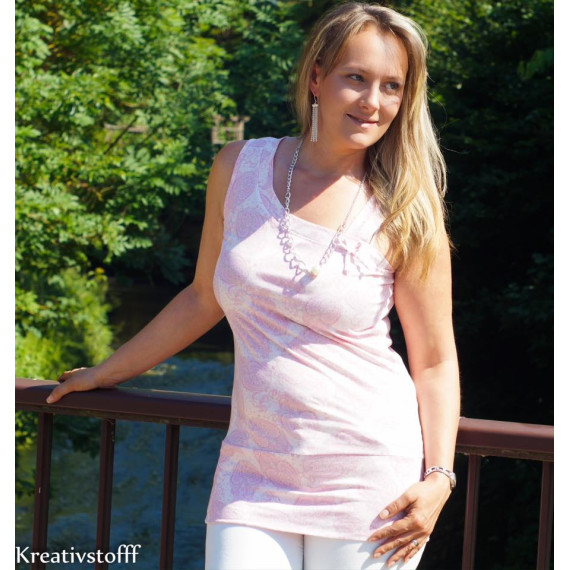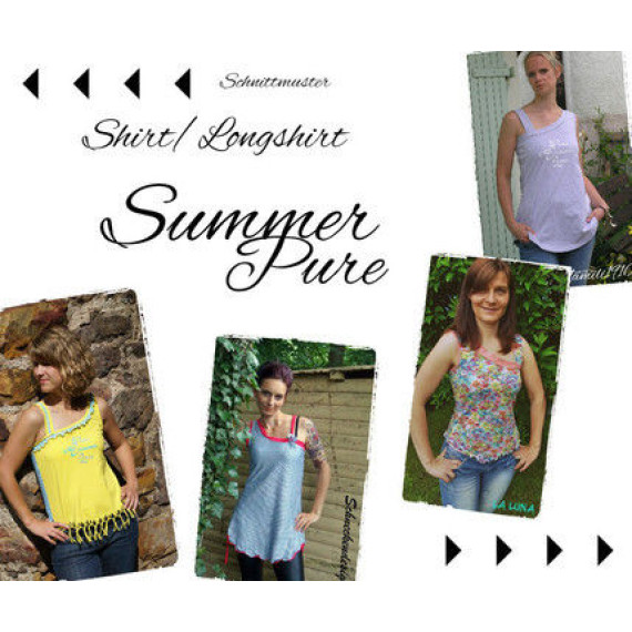"Summer Pure" ist ein bequemes Sommershirt mit vielen Möglichkeiten für die Trägerformen in einem Schnitt in Größe 32-44. Zudem kann man es in 3 verschiedenen Varianten nähen: als kurzes Bustier, normales Shirt oder als Longshirt. Genäht wird es aus elastischen Stoffen.