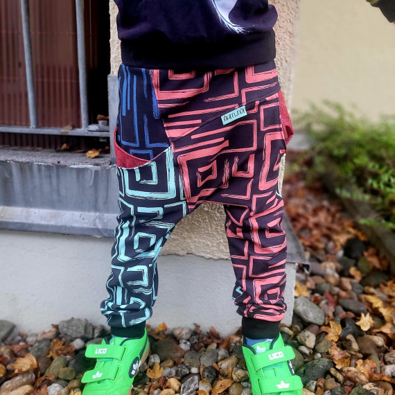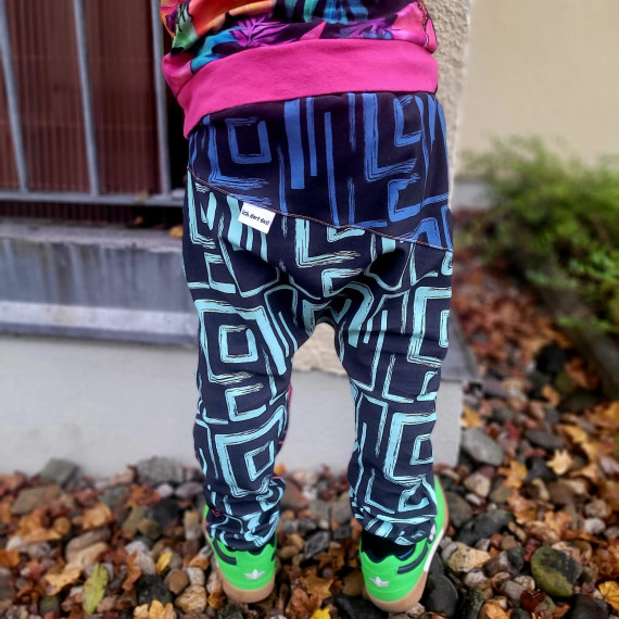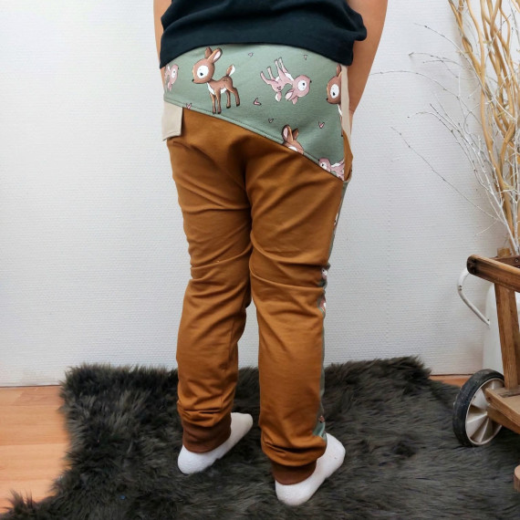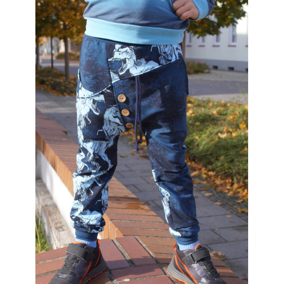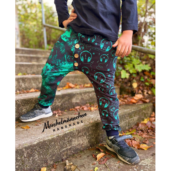 Hierbei handelt es sich um ein Schnittmuster inklusive bebilderter Nähanleitung für eine lange Hose in den Einzelgrößen 104, 110, 116, 122, 128, 134 und 140.