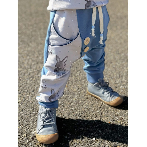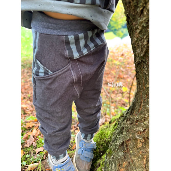 Hierbei handelt es sich um ein Schnittmuster inklusive bebilderter Nähanleitung für eine lange Hose in den Einzelgrößen 68, 74, 80, 86, 92 und 98.