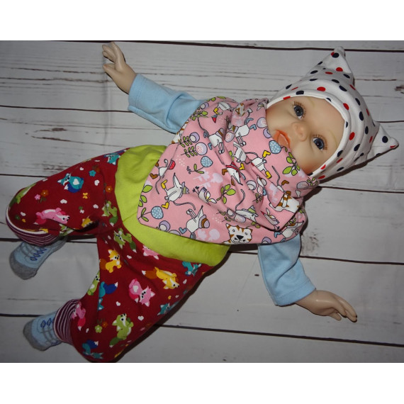 Für Frühjahr und Herbst aus Jersey genäht, im Winter aus Strickstoff, Plüsch oder Fleece.