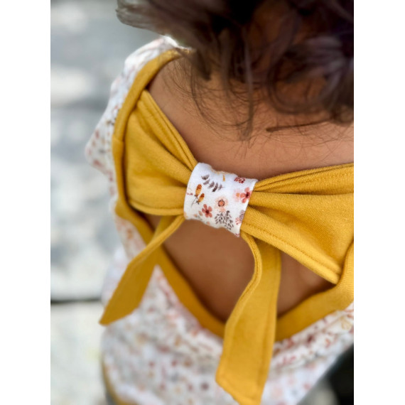 Für die kühleren Tage und/oder für alle, die den offenen Rücken nicht mögen, gibt es einen Einsatz für "unter die Schleife" dann liegt der Rücken nicht frei.