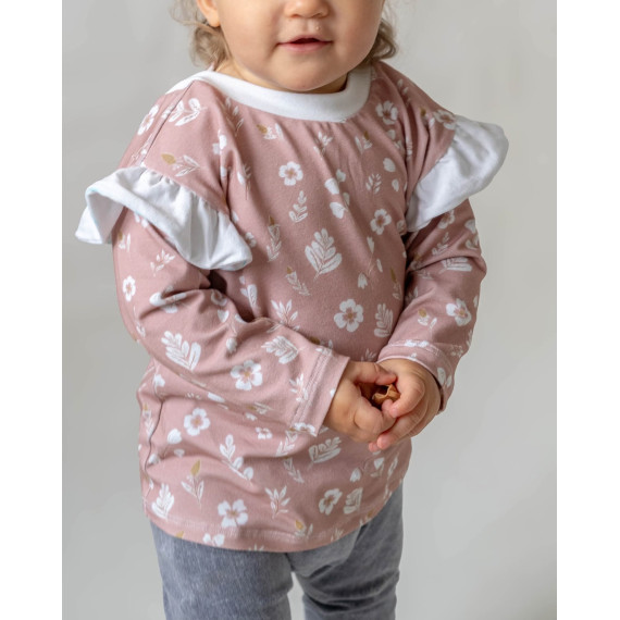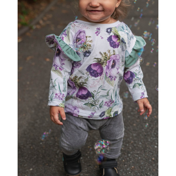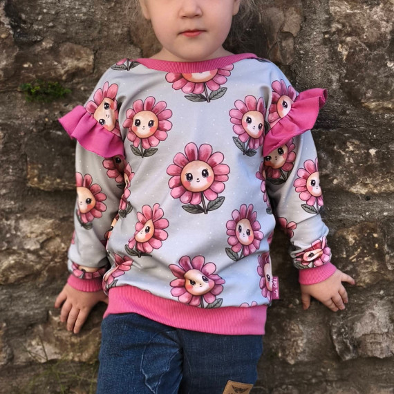 Hierbei handelt es sich um ein Schnittmuster inklusive bebilderter Nähanleitung für einen bequem weit sitzenden Pullover mit überschnittenen langen Ärmeln und dekorativen Rückenausschnitt in den Einzelgrößen 68, 74, 80, 86, 92 und 98.
