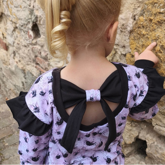 Die gerafften Flügelärmel, die Bauchtasche sowie die Schleife sind optional.