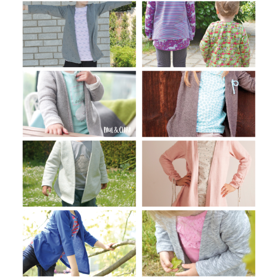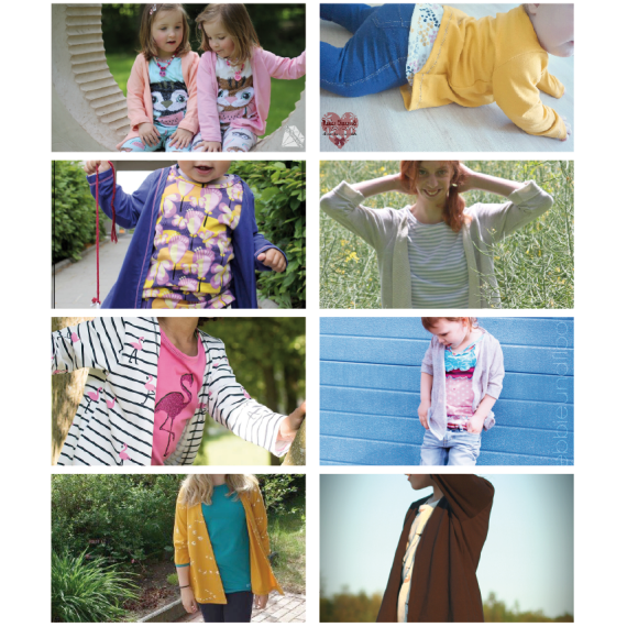Ausgelegt ist der Schnitt auf dehnbare Stoffe. Ideal sind Jersey, Sommersweat, Jacquard und Strick. Die Stoffe können auch untereinander kombiniert werden - wie zum Beispiel Sommersweat für das Außenteil und Jersey für das Innenteil.