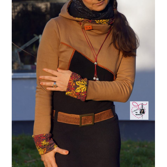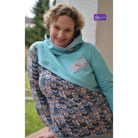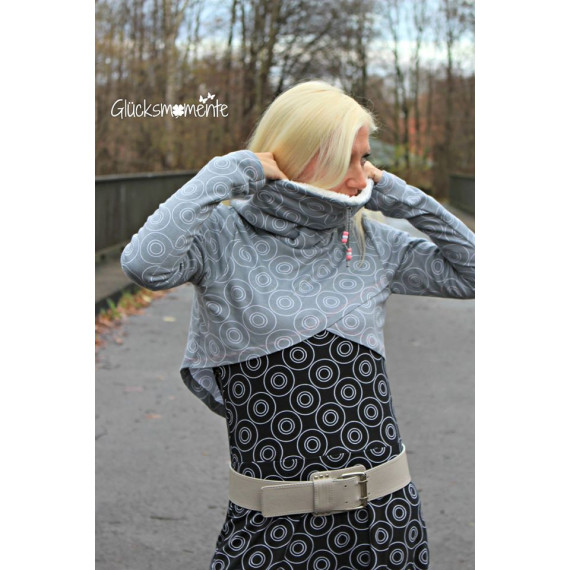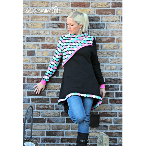 zusätzlich ist ein Tutorial für seitliche Taschen mit inbegriffen und den Bolero kannst Du in 2 verschiedenen Varianten (symmetrisch und asymmetrisch) nähen!