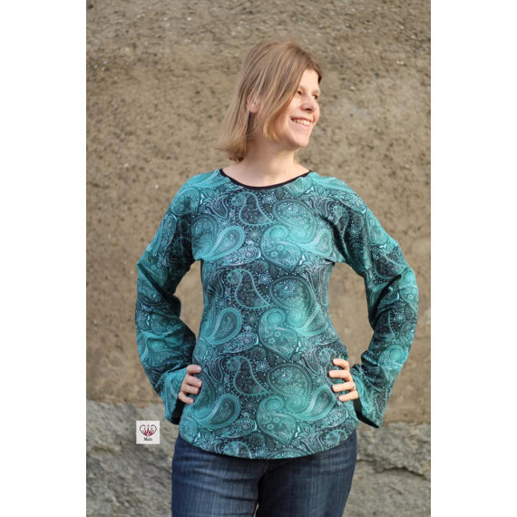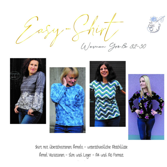 Easy-Shirt ist ein Basic Shirt mit überschnittenen Ärmeln. Es hat mehrere Variationen z.B unterschiedliche Auschnitte, VoKuhila, Glockenärmel, 3/4 Ärmel und mehr. Es gibt eine Slim Version und eine Legere Version. Das Schnittmuster ist als A4 und A0 Format hinterlegt.