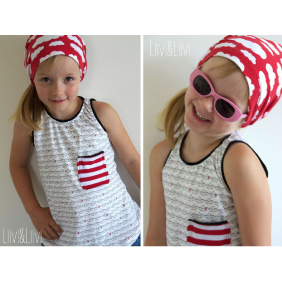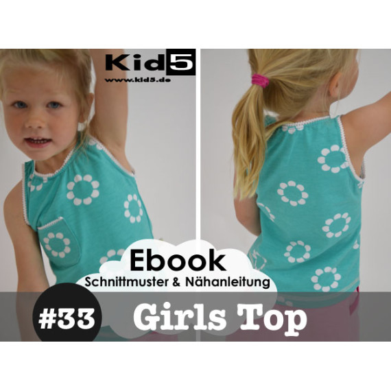 „Girls-Top“ ist ein Schnittmuster/ Anleitung für ein leichtes Sommertop mit Brusttasche. Du kannst es mit einem Ziergummi oder Bündchenabschluß nähen. Die Form ist mädchenhaft tailliert mit einem abgerundeten Saum. Als Schutz vor der Sonne ist der Halsauschnitt etwas höher angesetzt.