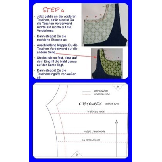 Die Hose kann aus allen nicht dehnbaren Stoffen gefertigt werden.